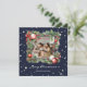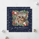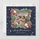 Elegant blått jokertecken med foto inuti en vattenfärgad julkrans av grisen grenar, holly och julklapp dekoration. Anpassa enkelt det här stjärnfotojulkortet med din bild och text.