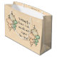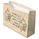 Denna very speciella julgåva Bag har ett elegantt, kvinnligt, Edwardian-eraen känselförnimmelsen. Presentera en original- design av Leslie Sigal Javorek, med grupper av 3 squiggly blåste glass prydnadar på bleka persikor & kräm- damastast bakgrund. Du kan hålla, att ändra, eller att göra klar standarden förse med text: "Önska dig fred, kärlek och ett mest joyous nytt år!".