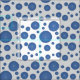 Blåstickade cirklar på vit bakgrund tyg