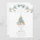 Den här delikata designen har en mjuk vattenfärg i Julgran, försedd med frostigt blå prydnadsföremål och pastellpresenter, inramad av guldfärgad gräs grenar och blå stjärnor. En drömmande och romantisk paus på ett vinterbröllopsestetiskt - elegant, vismisk och fullt av säsong charm.