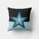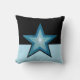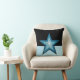 Modern design med en "skuggande" blå och vit stjärna på blekens blå och svarta bakgrund. Dekorativ kudde med ett anpassade som du kan anpassa med din egen text, bilder och dina idéer. Det här är en digitalbild som skapas med originalfotografier och digitalteknik och som trycks på tyg, som inte skiner eller innehåller riktiga miniatyrbilder.