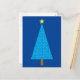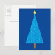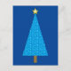 Vykort med förenklad modern användning av ett klassiskt Julgran-motiv, cerulenblått, platinerade stjärnor på akvariet med en koboltblå bakgrund