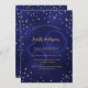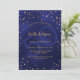 En glamorös födelsedagsfest inbjudan för både honom och henne. En marin blå bakgrund med faux guld-stjärnor. Den blå färg är ojämn. Anpassa och lägg till information om namn och party. Golden färgad. Ett stort åldersnummer som vattenstämpel. Baksida: marin blå bakgrund och guldstjärnor.