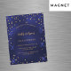 En magnetisk födelsedagsfest inbjudan för både honom och henne. En marin blå bakgrund med faux guld-stjärnor. Den blå färg är ojämn. Anpassa och lägg till information om namn och party. Lägg till födelseår och firande-år