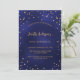 En födelsedagsfest inbjudan för både honom och henne. En marin blå bakgrund med faux guld-stjärnor. Den blå färg är ojämn. Anpassa och lägg till information om namn och party. Golden färgad. Baksida: marin blå bakgrund och guldstjärnor.