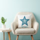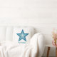 Modern design med en "skuggande" blå och vit stjärna på vit bakgrund. Dekorativ kudde med ett anpassade som du kan anpassa med din egen text, bilder och dina idéer. Det här är en digitalbild som skapas med originalfotografier och digitalteknik och som trycks på tyg, som inte skiner eller innehåller riktiga miniatyrbilder.