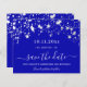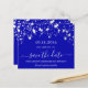 Ett trendig Spara datum för en 30:e (eller någon ålder) födelsedagsfest. En royalets blå bakgrund med vita stjärnor. Texten: Spara datumet skrivs med ett stort trendig-handskript i stil. Vit brev.
