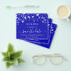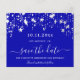 Observera att det här Spara datumet är pappert och mycket tunt. Kuvert ingår inte. Om du vill ha tjockare Spara datumkort (samma design) kan du besöka vår butik. Ett trendig Spara datum för en 30:e (eller någon ålder) födelsedagsfest. En royalets blå bakgrund med vita stjärnor. Texten: Spara datumet skrivs med ett stort trendig-handskript i stil. Vit brev.
