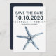 Grattisar på din förlovning! Spara datum meddelande är det första stora steget i planeringen av bröllop processaa! Kom ihåg att spara datum meddelande kommer att ange tonen för din stora dag, se till att imponera på gästerna med en oförglömlig design och en titt på vad som är för komen! Designad för att matcha våra inbjudningar och tillbehör till Seahorse & starfish bröllopet och den här marina chicen bröllop spara datum har en vintage stil Stjärnfish illustration i marulkblått. Perfekt för strand, sommar eller nautiska bröllop. Den här designen ingår i en samling. Besök vår butik för att hitta matchande artiklar. Kontakta oss på citronelladesign@gmail.com om du vill ha anpassningsbar