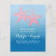 Romantiskt och rustiskt blått strandbröllop sparar datumkort med korallstjärnor.