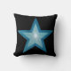 Modern design med en "skuggande" blå och vit stjärna på en svart bakgrund. Dekorativ kudde med ett anpassade som du kan anpassa med din egen text, bilder och dina idéer. Det här är en digitalbild som skapas med originalfotografier och digitalteknik och som trycks på tyg, som inte skiner eller innehåller riktiga miniatyrbilder.