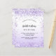 För en elegant 40:e (eller någon ålder) födelsedagsfest. En vit och violett övertoningsbakgrund för chic. Dekorerad med violett faux glitter, gnistor. Anpassa och lägg till information om namn och party. Namn är skrivet med ett handskript i stil. 1 lakan = 1 inbjudan tryckt kant till kant.