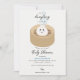En söt hand plockade-provdocka sitta i en ångare med blå hjärtan. En vacker provdoppande tematisk perfekt för barnduschinbjudan för blå pojke-babydusch. En idealisk design för provrörning av de tematiska babyduscharna.