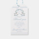 Visa uppskattning med det här trevliga tack du ger märkre som har skapats för en dusch i vår eller sommaren pojke. De här märkrna är förstärkta med en charmerande pastellblå rockhäst av trä som är fastsatt bland blått grönt vår blommor, bunden med en båge vid en vapensköld. Tillägg av klassiskt ljusblått kalligrafiskt skript förstärker ytterligare deras charm.