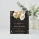 För en elegant Baby Shower, könsneutral. Snyggtens svarta bakgrund. Dekorerad med mörk guld glitter, gnistor och ballonger. Anpassa och lägg till information om namn, party. Namn är skrivet med ett handskript i stil