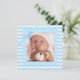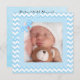 Detta födelsemärke är ett tema för nalle med rand i blå och vit schevron. Lägg bara till ditt baby-foto i anpassningsområdet. På baksidan ändrar du sedan hela texten till din baby-information: namn, förälderns namn, födelsevikt, längd.