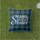 Unik, elegant och dekorativ kudde av land med stil med söt Cabin-citattext, på en klassblått och svart färgad Buffalo Lumberjack-tartan kontrollerar mönster-designen.