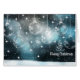 Kort för hälsning av god jul med vita dekorationer och mousserande stjärnor på mörk blått bakgrund med båda effekter; textmeddelande om anpassade inuti.