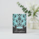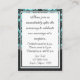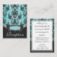 Blått och svart vasslingmottagningskort - Matcha hela sviten som finns nedan på den här sidan. Ställe de här korten med dina motsvarande inbjudningar och OSA kort för att informera dina gäster om dina mottagningsdetaljer. Anpassa dina mottagningskort Klicka på knappen Anpassa orange nedanför ovanstående demo för mottagningskort om du vill ändra teckensnitt, textfärg eller storlek till vad du vill. Om du är lycklig med typsnittet stil, färg och textstorlekar, kan du använda den anpassade funktionen till högerna av demonstrationen för att bara ändra demonstrationsinformationen till dina personuppgifter om bröllop. Se bara över demonstrationen när du har ändrat informationen (demonstrationen ändras automatiskt när du har gjort ändringar i färg, storlek eller teckensnitt). Demonstrationen kommer sedan att visa ditt kort efter att du skapar ändringarna. Klicka på förstoringsglaset ovanför demonstrationen för bröllopsmottagningskort för att få ett bevis för fullt syn. Du kan också klicka på varje bild (fram och tillbaka) för att checka ut varje sida när du har skapar ändringarna. Ett annat tips är att klicka på designknappen ovanför kortsymbolen för att zooma in om du vill se mer information och få en bättre förhandsvisning av färg och dekoration av designen. Blåbröllopsinbjudningar för ditt eget foto-Anpassningsbar 5x7 Blåbröllopsinbjudningar Spara på poscen - Tiffany Blue & Black Chandelier Damask Bröllopet Spara vykort för datum