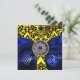 BLÅT LINT GULD GUL SVART DAMAST MONOGRAM INBJUDNINGAR