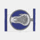 Lacrosse player keepsaké presentfilt med slapp stift på blå bakgrund. Redigera text om du vill lägga till spelarens nummer eller namn.