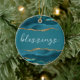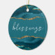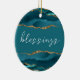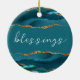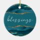 Keramiska prydnadsämnen av elegant som innehåller "välsignelser" av ord i en söt agate geode slice med djup teal och turkos vattenfärgad textureringsbakgrund och accenter av guld glitter. Inspirationell och motiverande hängdekoration. Anpassa med ditt eget ord eller meddelande.