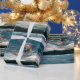 Blåtonad logvägg. Abstraktens bakgrund och Presentpapper
