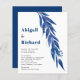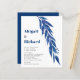 BUDGET eukalyptus gren med löv i blåfärgad bröllopsinbjudan. En härlig design för bröllop med ett kaskadande gren av eukalyptus löv. Baksidan är av blå färg.