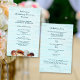 Bröllopsprogrammet för levande hav tryckt på en prisvärd papper. Anpassa text på båda sidor över en ljusblå träbild. På framsidan har grund realistiska avlopp och en sanddollar. Texten är djuphavsblå färg och alternerar mellan skript och tryckt typsnitt. På baksidan ges utrymme för ett kort-meddelande från paret. Pappra är storlekt 5,5 x 8,5.
