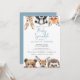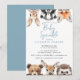 Denna söta blåa skogsbeklädnads vattenfärgsdjur baby sprinkle-inbjudan kan vara personlig med dina uppgifter i modern typografi. Designad av Thisisnotme©