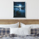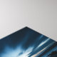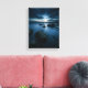 En serenskymp med slätt vatten och dramatiska moln ovanför en klippande strand. Denna fängslande konst tillför djup och mysterium till moderna eller minimalistiska miljöer.