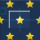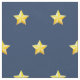 Guld stjärnor på marinblått tyg. Den lilla gyllene gultens nautiska stjärnor mönster står mot en klassisk marin blå bakgrund på denna vackra nautiska tryckta väv. Stjärnorna är designade att skriva ut med ett faux metalliskt utseende och skapa en illusion av guldgruva.