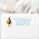 Returetiketter med valfri snäcka och havsblå tryckt . Vita etiketter avgränsas av en tunn, brunt linje. Namn och adress skrivs ut med ett modernt, handskrivet teckensnitt och får plats i upp till fyra linjer.
