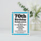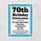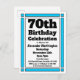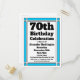 Skicka inbjudningar till en 70-årsfirande med detta Bright Blue 70 Birthday-vykort. Anpassad med dina personuppgifter och party.