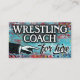 Affärskort av färgbeläggning av brottling Coach i turkos, aqua, rött, gult. Wrestling Coach for hire affärskorts.