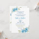 Lekfulla blå akvarellblommor och visuellt tilltalande typsnitt skapar en elegant bröllopsinbjudan som frammanar talesättet "Något gammalt, något nytt, något lånat och något blått". Mest formell i stilen, med mer avslappnade element invävda, förenar denna design vintage- och moderna estetiker sömlöst.