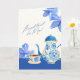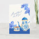 Blått akvarell blomster kaffekopp morsdags kort.
