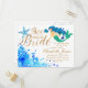 Blått akvarell undervattens söta sjöjungfru med gy inbjudan vykort