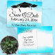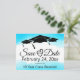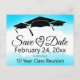 Skicka iväg detta mallkort med tillkännagivande med en blå topp och botten akvarell med svart text och vit "Spara datumet" för din klassåterträff. Anpassa texten i mallfälten för framsidan och baksidan eller klicka på anpassa för att välja en typsnittsstil, storlek och färg du föredrar.