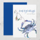Det här enkla julkortet har en kopia av min ursprungliga handmålade akvarell blå krabba på en skarp vit bakgrund. Orden Seas and Greetings är satta i en modern borstskriftstil. Personalisera som du vill. Det kustinspirerade julkortet har en enfärgat blå baksida. Ett sött val för att säga tack till din vårdgivare och för att skicka till vänner och familj denna jul. För att se fler strandinspirerade julkort och trender av Victoria Grigaliunas besök DoTellABelle på Zazzle på www.zazzle.com/dotellabelle