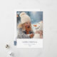 Blått årligt visitkort för årsuppdatering av julvinterfamilj. Elegant God jul årliga familjeuppdatering i ett klassiskt stil med monokromt vinterlandskap i marinblått och vitt färg. Snyggts- och elegantens utformning. Ett foto.