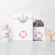 Den här söta designen har en vit bakgrund med blå ankare och röda livskonserverare i ett nautiskt tema. Perfekt för en babydusch eller baby födelsedag.