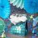 Snyggtens presentlåda med en samling glittrande blåa och silver julbalkar. Ett anpassade som du kan anpassa med egen text, bilder och egna idéer. Bilden skapades med hjälp av ett originalfoto och digitala tekniker.