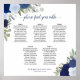 Blått Blommigt 5 Bord Elegant bröllop-sittdiagram Poster