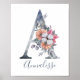 Blått Blommigt Akvarell Monogram A Namn Poster