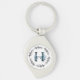 Blått Blommigt Anpassningsbar Monogram - Brev H Swirl Silverfärgad Nyckelring