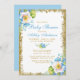 Vattenfärgsblå Blommigt och Guld med Guld Glitter Baby Shower-inbjudan - Blue Back