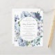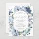 Elegant dammiga blåa blommor skapar en vacker blommigt ram för er begravningsinbjudan. Den avlidnes namn är skriven i ett traditionellt manus. Hela texten kan enkelt redigeras för att skapa en personlig hågkomst.