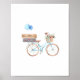 Cute poster med en feminin-cykel med vattenfärg och med en blomma basket och bagage på racket. Perfekt, enkelt och överkomligt sätt att behandla alla förskolor, barnrum eller alla bostadsutrymmen som behöver ömtåligt kärlek och som behöver vård på vilken tillfälle som helst