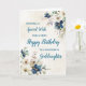 Ett vackert kort till din guddotter på hennes födelsedag med elegant marin blått och krämfärgade blommor.